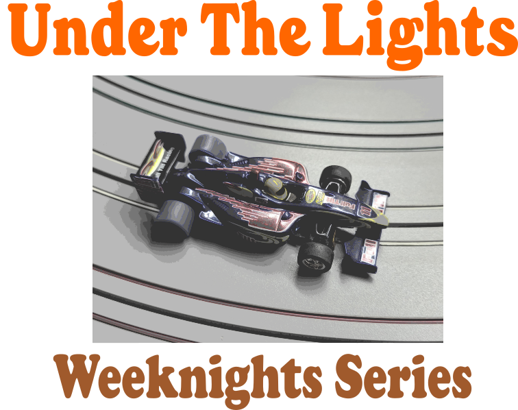 We ran this rag-tag set of old Tyco 440-X2 Narrow cars in this one. Not the best call with two new drivers in the mix, but we managed to complete the 20-lap fuel race without too much delay. Mike Langell came out swinging in this one, winning the first and third segments. New driver Joey Vierra, had a great opening race, winning the fourth segment in the white lane with the fastest lap, and bagging a 2nd place finish in the final segment, just one lap down from the leader.